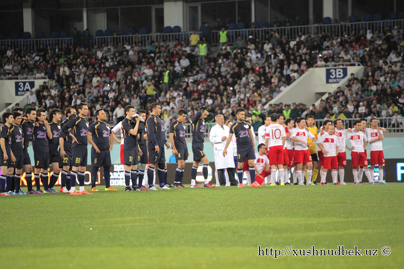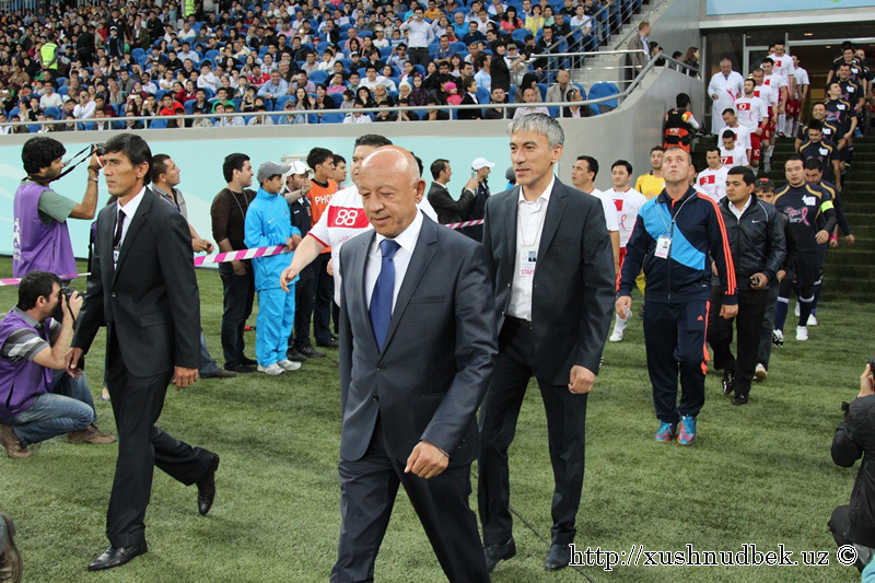 | Иккала жамоа майдонга тушиб келмоқда. Шукрулло Исроиловнинг ҳар қадамидан стадион ларзага келди |