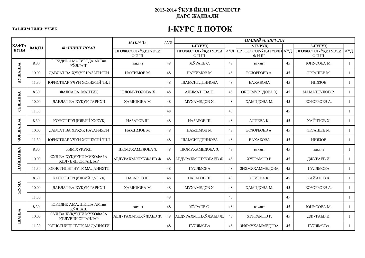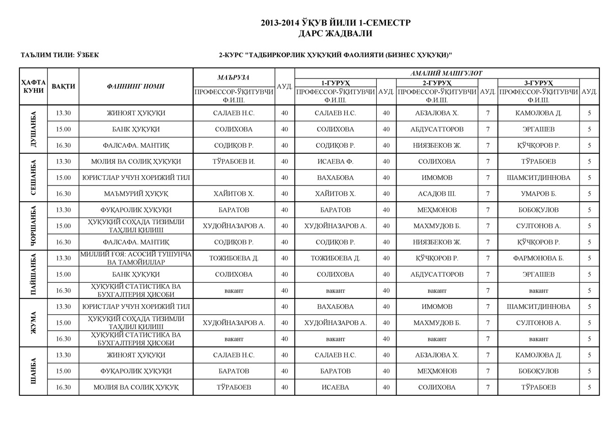Агарда компьютер орқали мазкур саҳифага кирган бўлсангиз, унда PDF вариантдаги дарс жадвалини юклаб олинг.